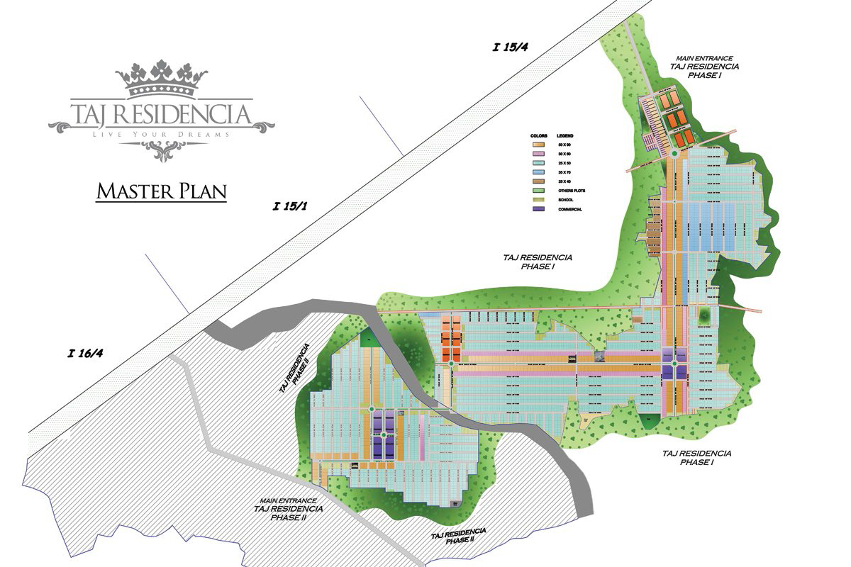 Taj Residencia a name which represents Royalty and offers a residential class above the rest. It exudes a luxurious lifestyle surrounded by lush green landscapes, world class retail and leisure spaces and an overall well established desirable community complemented by amenities which can fulfill all of your desires. Taj Residecia is uniquely located at a 10-15 mins driving distance from the new Islamabad airport and just 7 mins from the Quaid De Azam hospital. This community will cater to the discerning taste of every resident whether old or young. It will be a place where residents will be able to enjoy the gracious elegance of the most imposing lifestyle surrounded by refined luxury and a glorious ambiance.